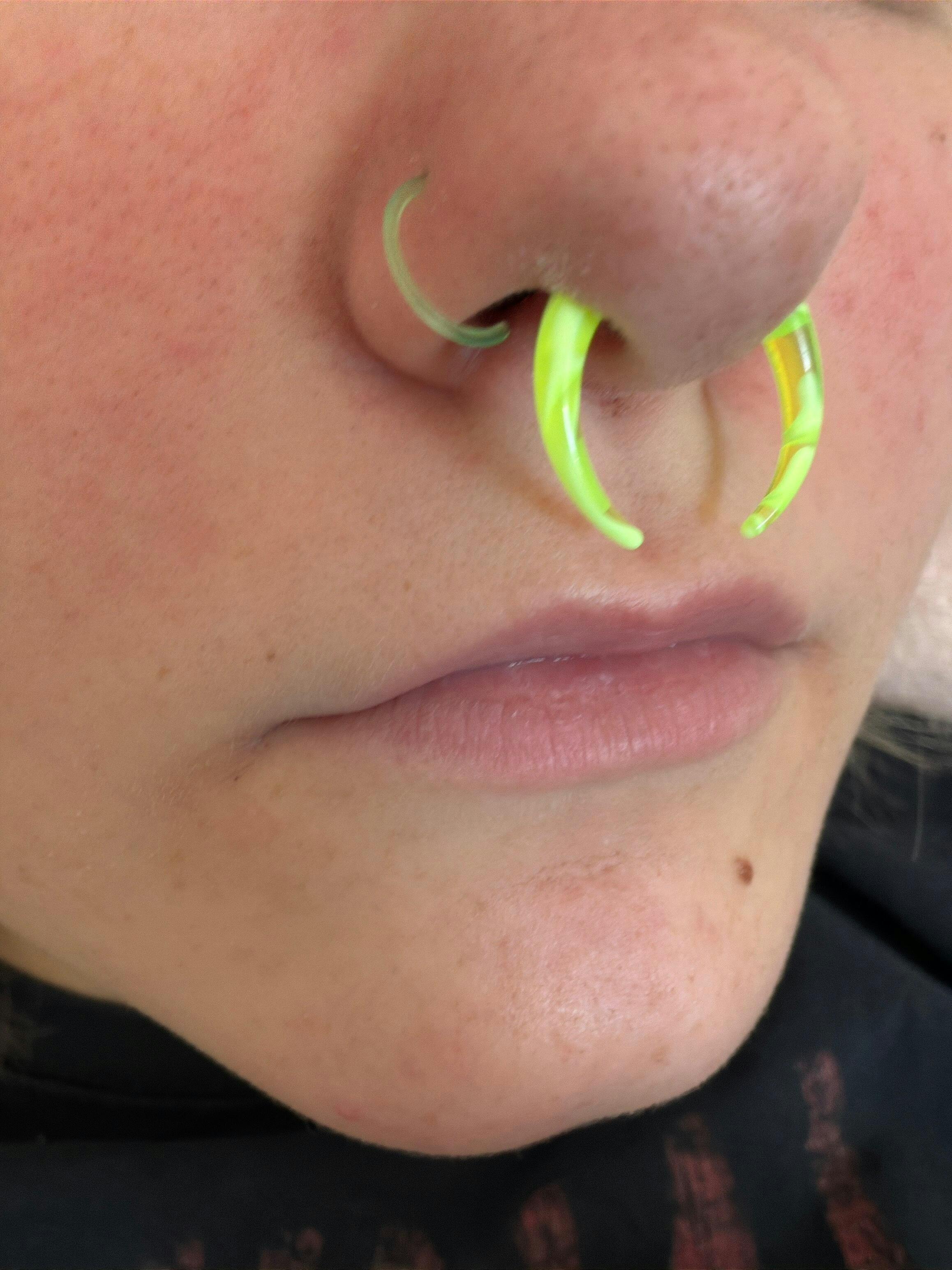 MUST HAVE! This design is so outstanding! You can have 9 pieces acrylic nose ring with different colors for only $9.99, and it is very easy to wear and take off, with no hurt to your piercing, we use the best quality Acrylic material, and you can wear it safely.