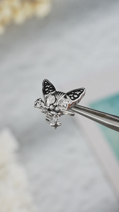 Inspired by a cat holding a rose, these earrings stud blend romantic symbolism with punk attitude in a single sculptural design. The cat represents independence and self-possession, while the rose symbolizes bold emotional expression. Clean metal lines with subtle darkened detailing create a striking contrast — sweet, yet unapologetically sharp.